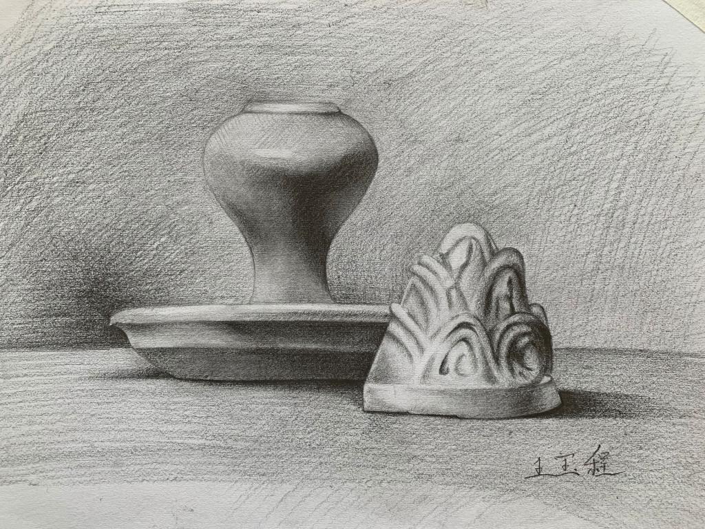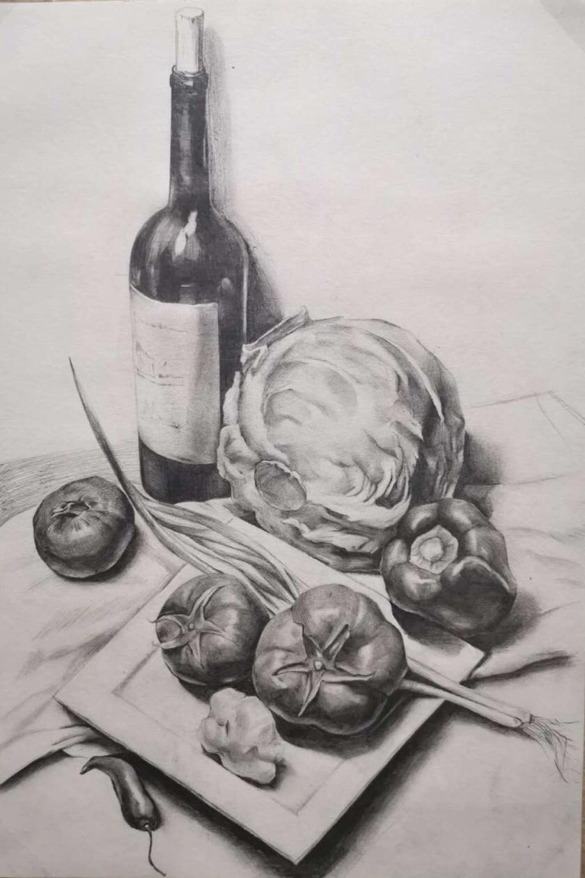 在以往的教学模式中,素描教学可以随时进行一对一的个性化指导,但是线上教学不具备这种便捷的实操条件。因此,两位老师经过认真研究,总结出一套静物素描绘制的规范流程,把整个绘画过程分为轮廓、结构、明暗、加重、揉擦、深化和调整七个步骤。这为保证和提升该课程的线上教学效果,提供了坚实基础。教学过程中,两位老师按照该流程,结合典型实例,详细解读每个步骤的技法和要点,并设计优质的视频教学资源予以辅助,让学生们跟随视频进行同步训练,进而掌握绘画要领。实事证明,这一套教学技法和流程设计,取得了极好的教学效果。在此基础上,按照绘画教学步骤设置相应的时间节点,让学生提交相应步骤的素描过程图。在网络授课中,实现线上线下教学的良好结合。在备课过程中,张艳老师录播了经典素描作品赏析;王美达老师利用有限的条件,自备工具,亲自示范,拍摄制作了原创教学流程,丰富教学内容,提升教学效果。