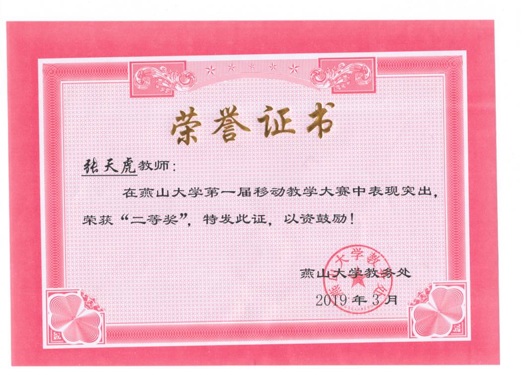 张老师是一个有心人。平时注重积累,学习了各种多媒体教学技能,并在河北省教育厅组织的高校新入职教师国培示范项目培训中获得了PPT制作一等奖。自2018年学校推广使用线上教学平台起,他又参加了教务处以及超星公司开展的多次培训,完成了多门课程的线上建设,并获得了无码a片