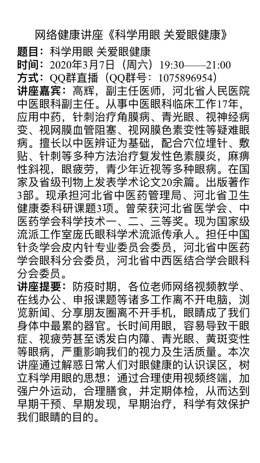 分工会联合组织并邀请河北省人民医院中医眼科主任高辉医生,与无码a片