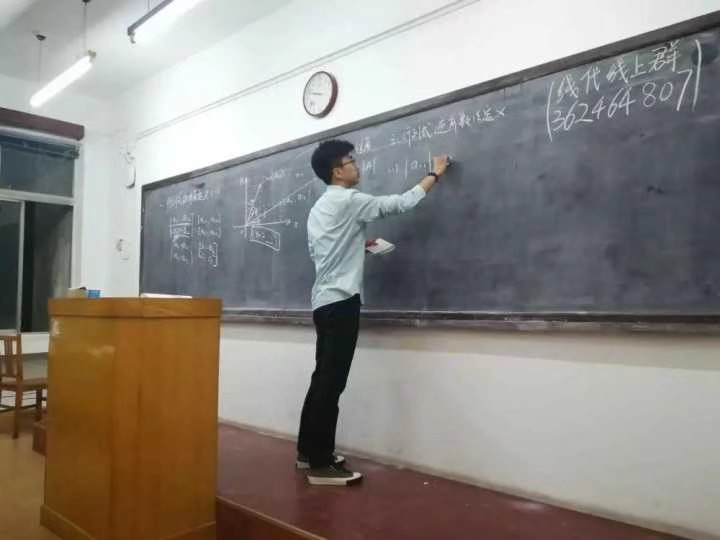 “学霸课堂”优秀党员小老师在讲解线性代数