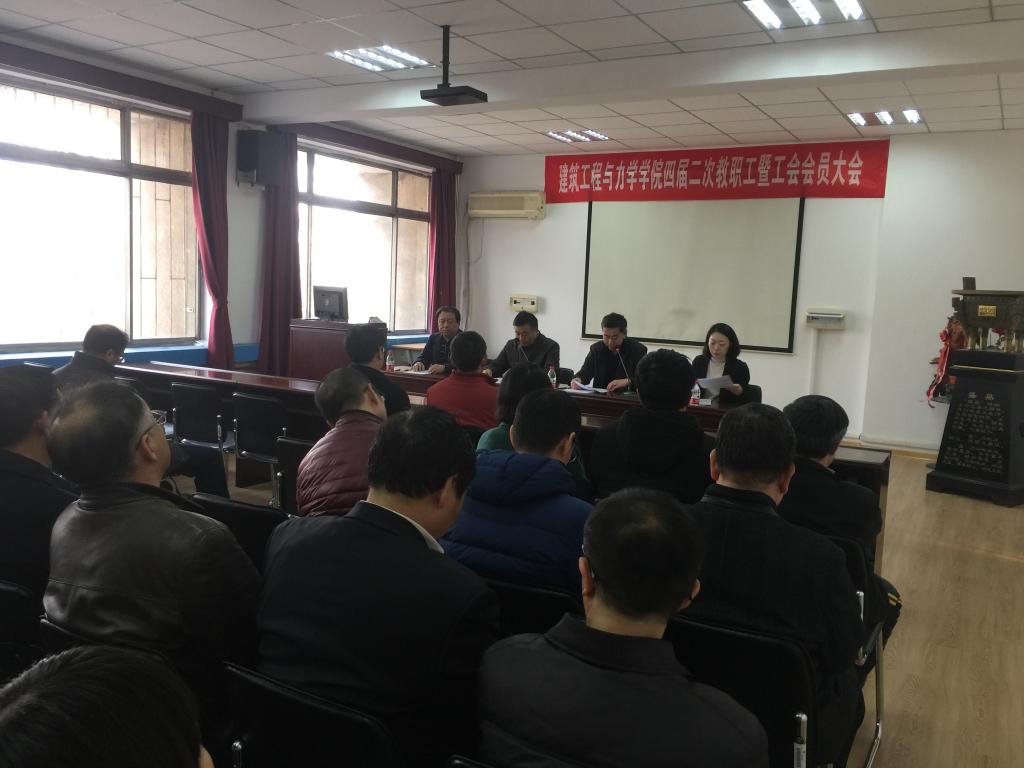 2017年3月16日下午,无码a片 四届二次教职工暨工会会员大会在建筑馆211室召开,会议由无码a片 工会主席、党委副书记才华同志主持,无码a片 副校长孔令富教授出席了本次大会。