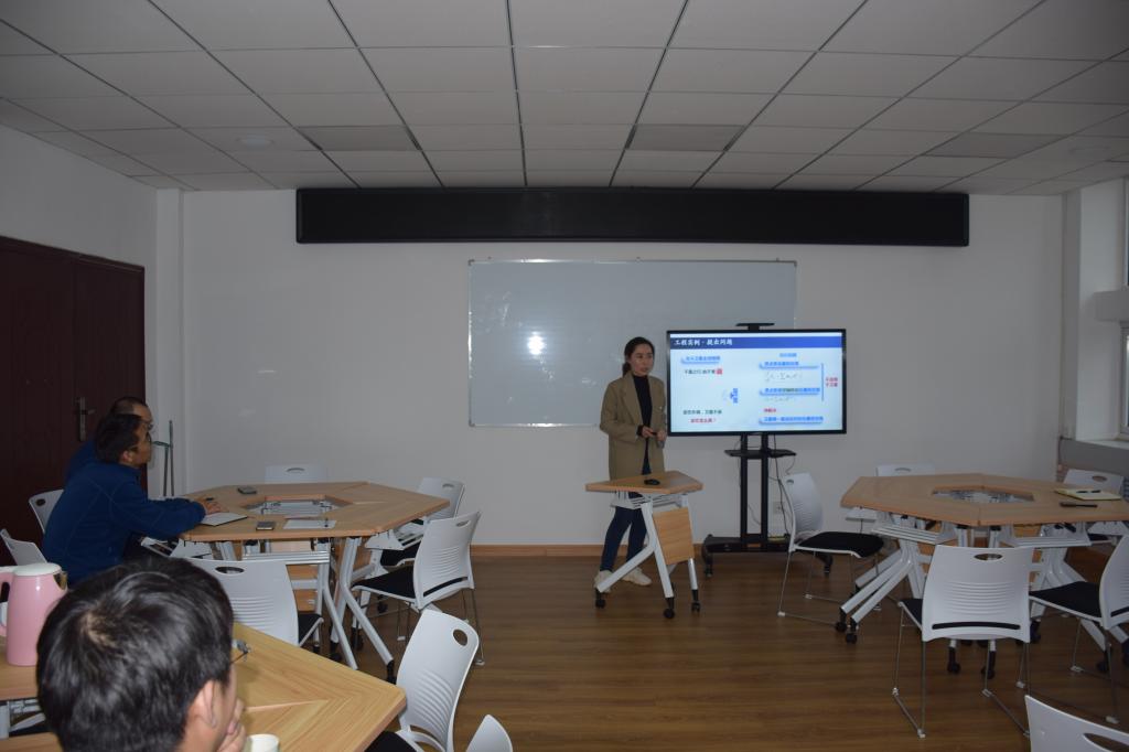 根据安排,首先由参加课程思政优秀案例展示的潘鹏程、郝颖、吴吉贤三位老师分别进行15-20分钟的微课讲授和5-10分钟的说课。每位老师讲完后,各位领导均进行了有针对性地点评,从PPT的制作、课程思政的切入、讲课的仪态和语调等多个角度提出了许多中肯的意见建议。同时,对于各位老师提交的教学设计、课程简介等各项文字性材料,各位领导也进行了认真审核。