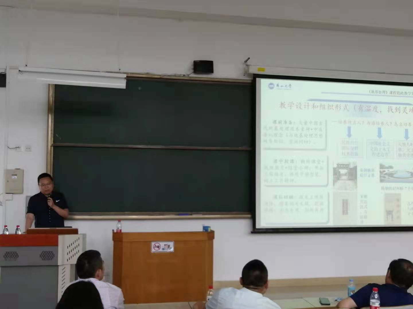 2021年6月10日,为进一步深入做好课程思政,在四教208开展了课程思政交流会,在会上土木工程系主任曹海莹老师以所讲授的《地基处理》这门课为案例,和大家分享了开展课程思政的具体作法和心得体会,从课前准备、课中讲授和课后回顾三个环节讲述了如何进行教学设计和组织。