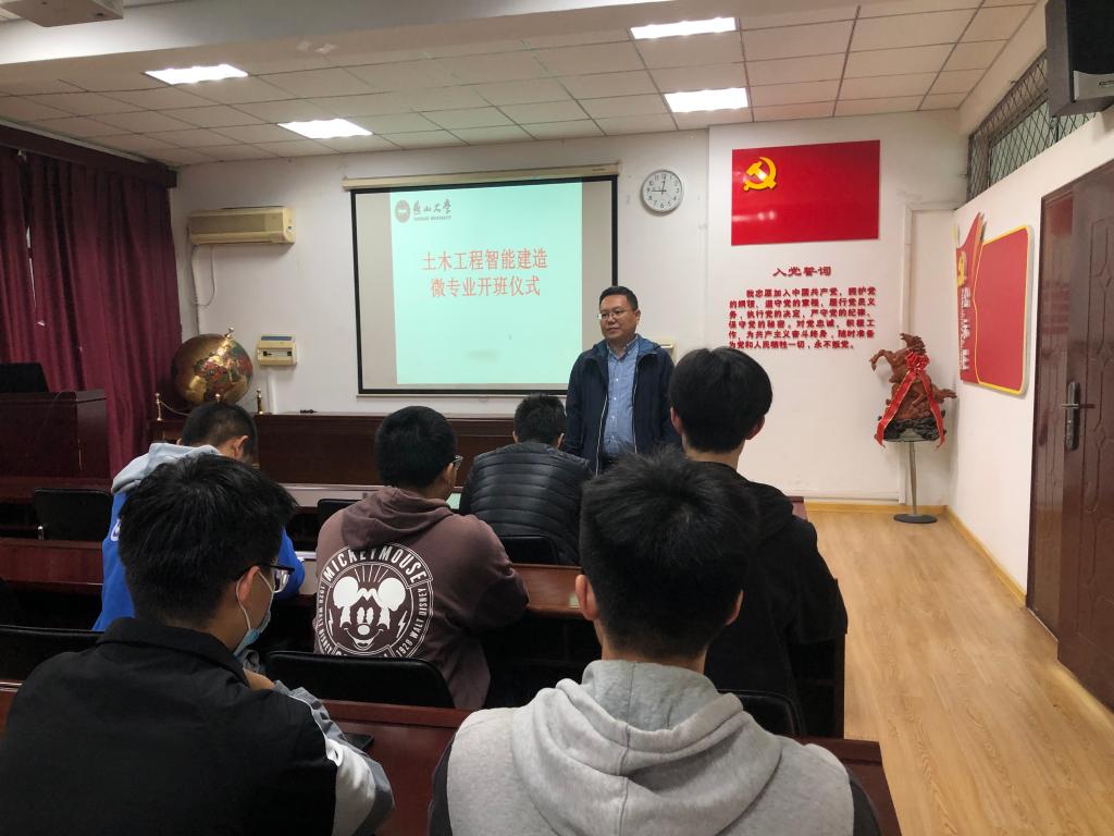 2021年10月10日我院土木工程智能建造微专业开班仪式在建筑馆211会议室举行,首届微专业共招生学生20名,分别来自建筑工程、道路与桥梁工程、岩土与地下工程、工程力学、建筑环境与能源应用工程、机械制造及其自动化、冶金机械、机电控制工程等8个专业方向,基本形成了学科交叉融合的专业特点。微专业培养计划共设置16学分、8门核心课程,涉及机器人技术、BIM建模技术、3D打印技术、创新方法驱动、工程伦理等多个领域,将于2021年10月底正式授课。