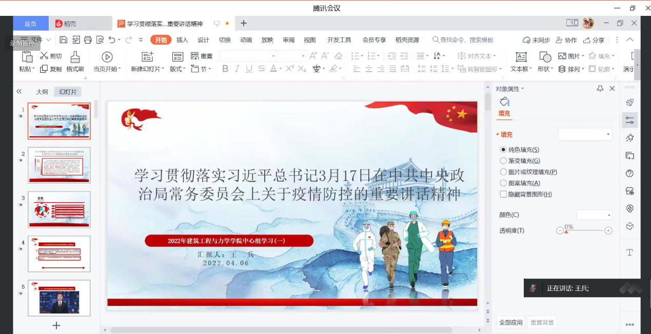 党委中心组成员参加了本次学习,会议由院党委书记宗家富主持,党委副书记王兵担任本次学习会的领学人。