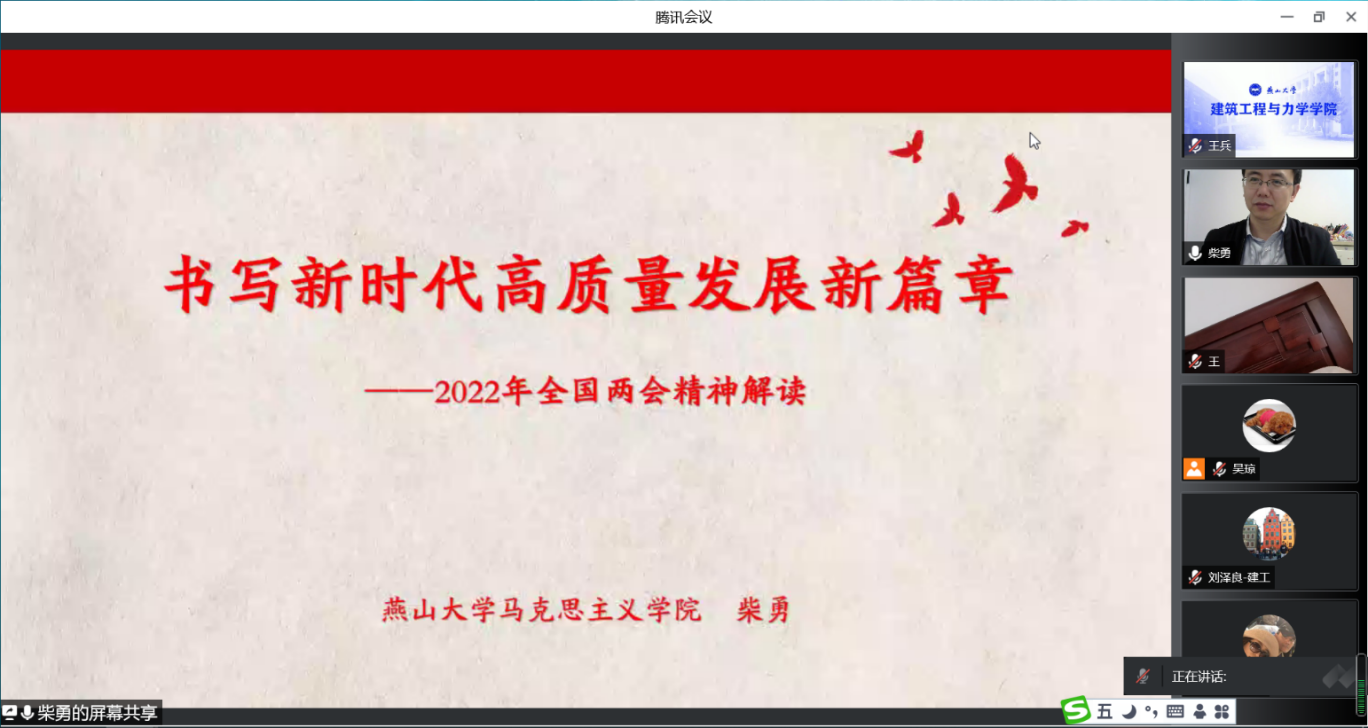 副院长柴勇教授作题为《书写新时代高质量发展新篇章——2022年全国两会精神解读》的辅导报告。全院教职工和研究生党员聆听了讲座,会议由无码a片