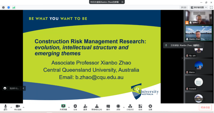 11月29日下午,应我院邀请,澳大利亚中央昆士兰大学(Central Queensland University)工程技术学部副教授、博士生导师赵宪博博士,为全院师生做了题为“工程风险研究前沿”的学术报告。报告重点分析了2000年来工程风险管理知识体系的演变、风险体系的智能结构以及可能涌现的研究热点,为全面掌握工程风险研究脉络,探索工程风险研究前沿提供了新视角。