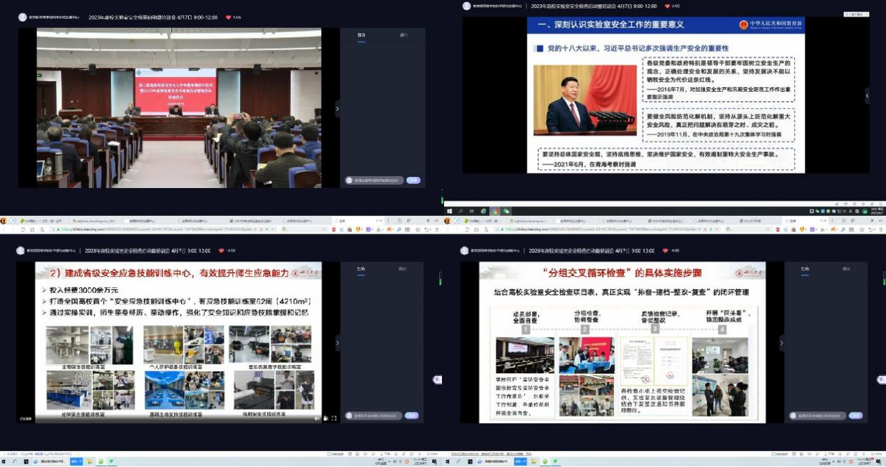 组织实验中心全体教师、部分专任教师和硕士、博士研究生参加了2023年高校实验室安全检查启动暨培训会。本次会议由教育部科学技术与信息化司、高等教育司联合举办,旨在确保高校实验室安全运行,保障广大师生人身安全和校园稳定,落实《教育部办公厅关于组织开展2023年高等学校实验室安全检查工作的通知》部署。