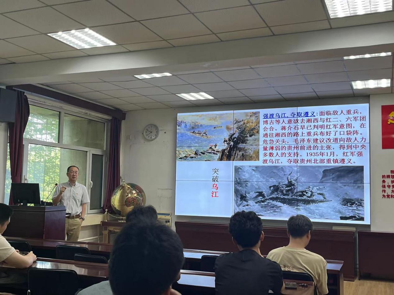 学生党员代表,以《从中国工农红军长征胜利再看两个确立的历史意义》为题讲授主题教育专题党课。他从“中央红军为什么要长征?”“长征从何时开始、从哪里出发的?”等13个问题入手,带领学生党员学习长征的历史及其伟大精神。胡建军强调,大到国家建设,小到党员的自身发展,都离不开长征精神的指导。全院师生要以长征精神为指引,坚定信念、不畏艰险、锚定目标、勇往直前,一步一个脚印,走好无码a片