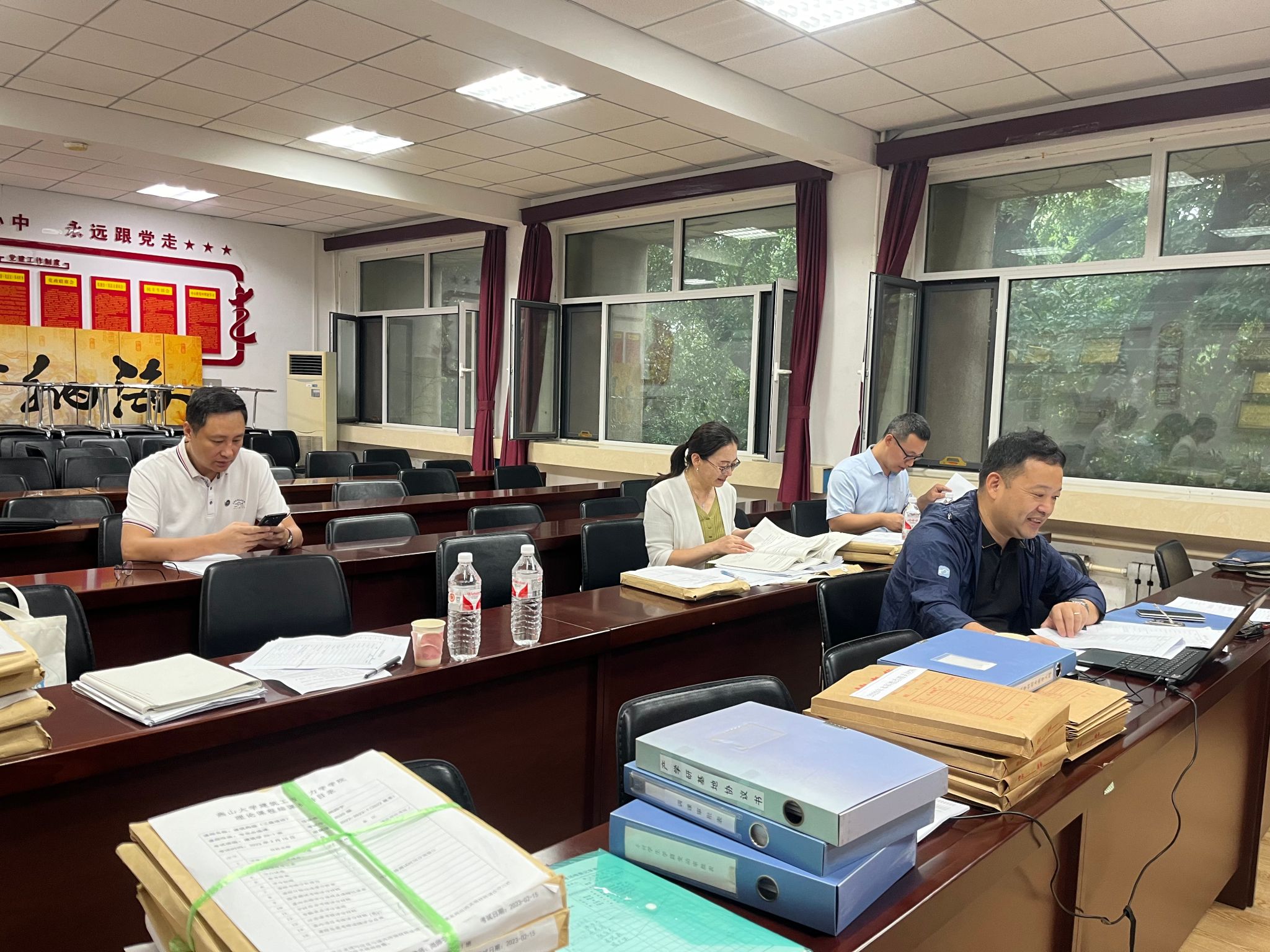 日常教学管理、教学质量监控、人才引进、学术委员会或党政联席会纪要等相关资料,同时抽查各系部近三年课程考核、实习实训实践、毕业论文等教学归档材料。综合办公室全程协助专家调阅各类资料。