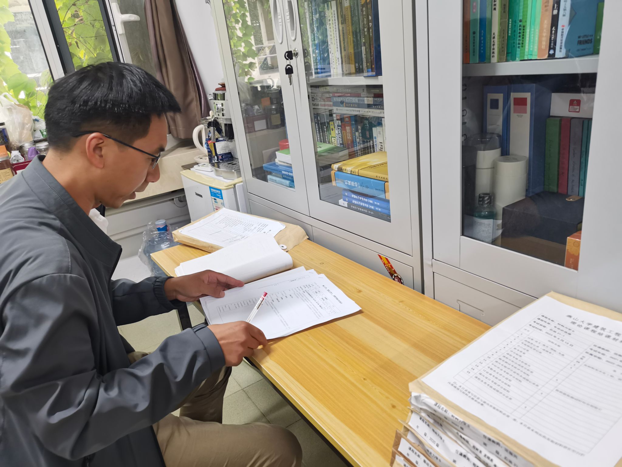 为扎实推进无码a片 本科教育教学审核评估整改工作,做好专家进校审核评估工作,2024年9月20日下午,工程力学系主任梁希、副主任郝颖、教师代表余为到无码a片 档案室集中抽查部分教师、部分课程的考试归档材料。