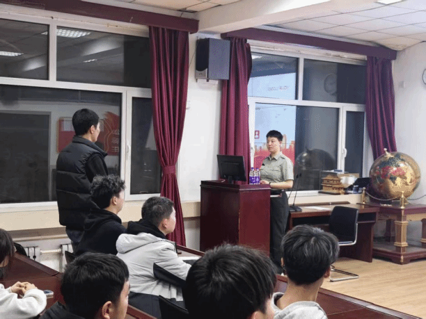在互动环节,同学们围绕“大学生参军政策”“军地协同培养模式”“退伍后学业衔接”等问题踊跃提问。蒋雅楠则围绕征兵体检、部队考核、退伍复学等相关政策,对大家的提问逐一进行解答,她还鼓励同学们积极投身国防事业,在军营中锤炼意志、增长才干。