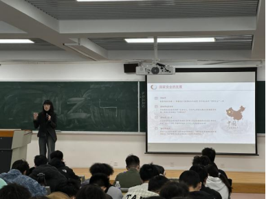 张娟娟老师以“点亮安全之光,护航青春征程”为题,从国家安全概述、国家安全形势以及国际战略形势三个方面展开,阐述了高校学生在筑牢国家安全防线中的责任和使命。张娟娟强调,当代青年要做国家安全的“守护者”,在社交媒体发言前多问一句“是否利于国家安全”;做“破局者”,努力学习,勇攀科技高峰。