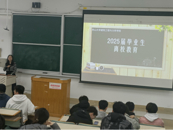 会议伊始,周爽首先鼓励未确定就业去向的同学充分利用各方资源,调整心态,抓住时机,主动出击。通过政策解读与案例警示相结合的方式,周爽系统讲解助学贷款还款流程及展期政策。她特别强调,个人征信已成为职场发展的“第二张身份证”,违约行为将严重影响未来金融活动,要求守好诚信底线。就同学们关注的毕业问题,针对毕业资格审查、毕业设计答辩、课程重修、离校事宜等问题,周爽也逐一进行了详细讲解。在毕业季即将来临之际,周爽倡议同学们以影像记录校园记忆,以感恩之心传承燕大精神,要以宿舍安全底线,严格遵守校规校纪,杜绝酗酒喧哗等不文明行为,以安全有序的方式为大学生活画上句点,做到文明离校,用实际行动诠释建工学子的责任与担当。