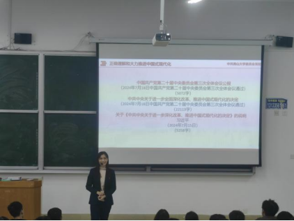 李晔老师通过对比2017年党的十九大党章与党的二十大党章,系统梳理了党章在革命、建设、改革各时期的演进历程,强调“变的是时代要求,不变的是为人民服务的根本宗旨”。李海艳老师通过提问的方式深刻阐述了以党的自我革命引领社会革命的原因和意义,强调我们党正是通过不断自我革命,才推动新民主主义革命、社会主义革命和建设、改革开放和社会主义现代化建设取得伟大成就,才让新时代中国特色社会主义事业行稳致远。郭清秀老师围绕中国共产党第二十次全国代表大会报告中关于中国式现代化的重要论述展开讲解。结合理论与实际,深入剖析中国式现代化的内涵、特征与重大意义。