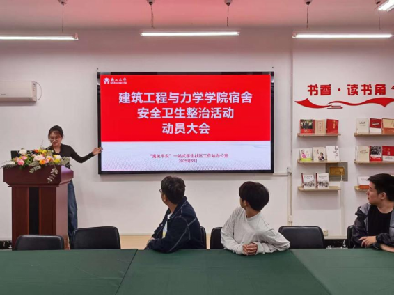 先后组织召开一站式学生社区工作站专班会、班级生活委员专题培训会及班长联席会议等进行深入贯彻落实。辅导员详细解读《细则》相应内容,明确卫生安全责任,统一思想、凝聚共识,强调学生干部应以身作则,发挥模范带头和桥梁纽带作用,带动广大同学共同参与寝室环境建设。